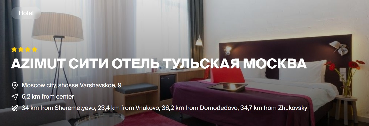 Hotel's website: https://azimuthotels.com/ru/moscow/azimut-hotel-tulskaya