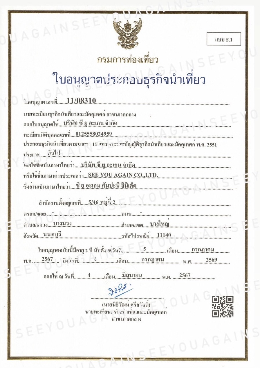 ใบอนุญาตประกอบธุรกิจท่องเที่ยว License 11/08310