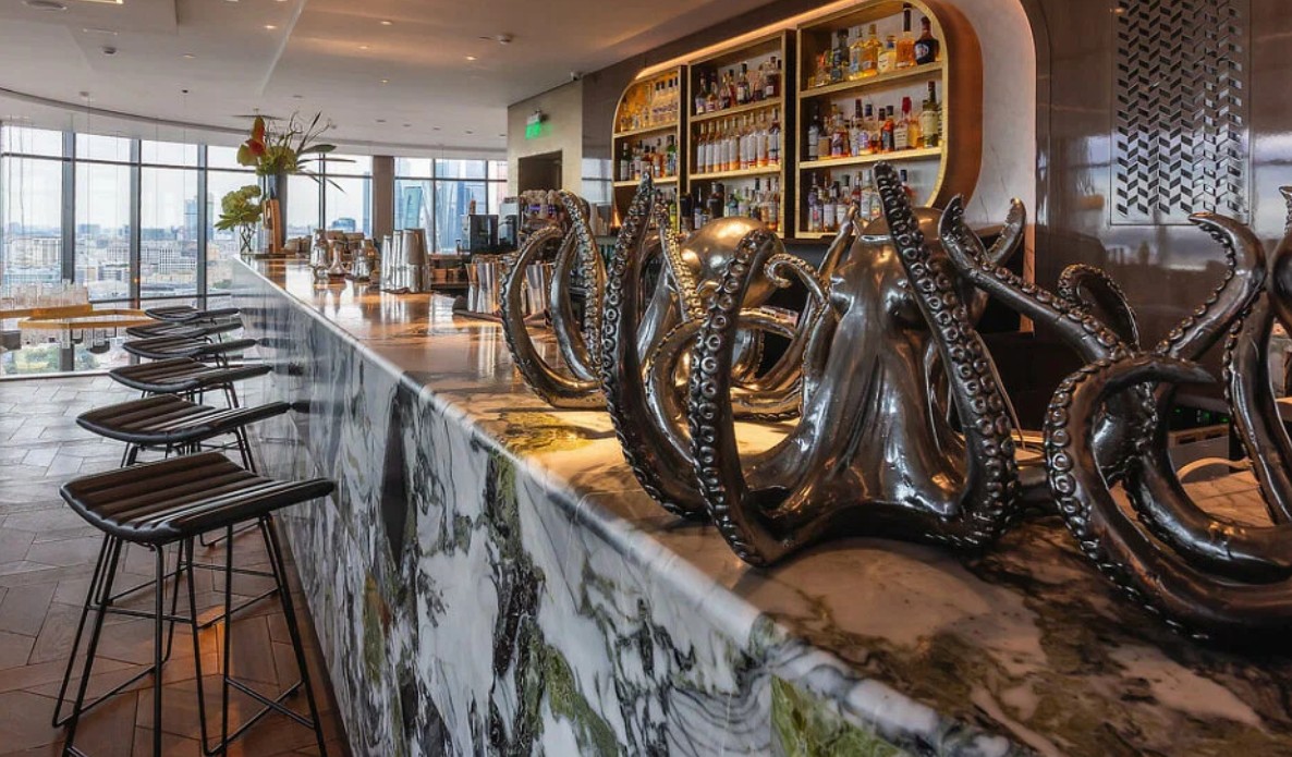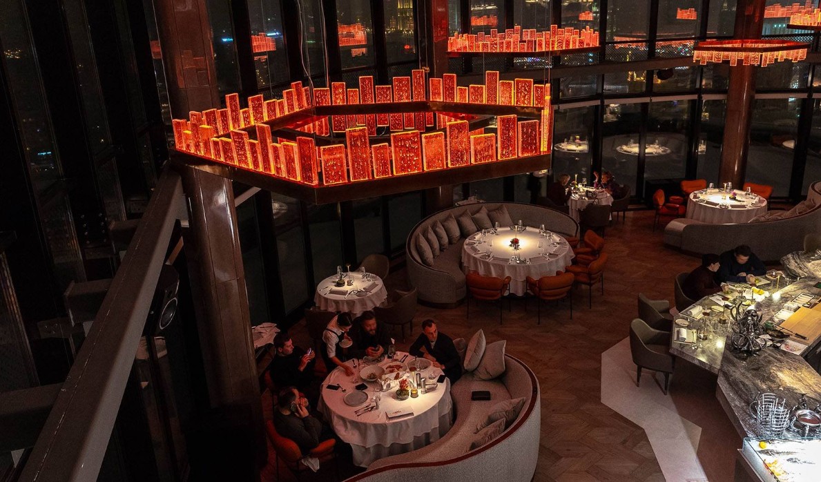 ร้านตั้งอยู่สูงจากพื้นดินถึง 88 เมตร ใจกลางย่านประวัติศาสตร์ของกรุงมอสโก มอบมุมมองแบบรอบทิศที่งดงามตระการตา